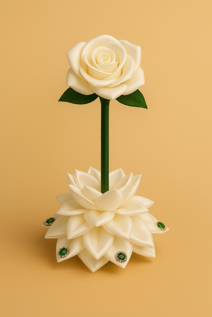 Centro de mesa artesanal em cetim, ideal para casamentos. Elegância, delicadeza e charme para momentos verdadeiramente únicos